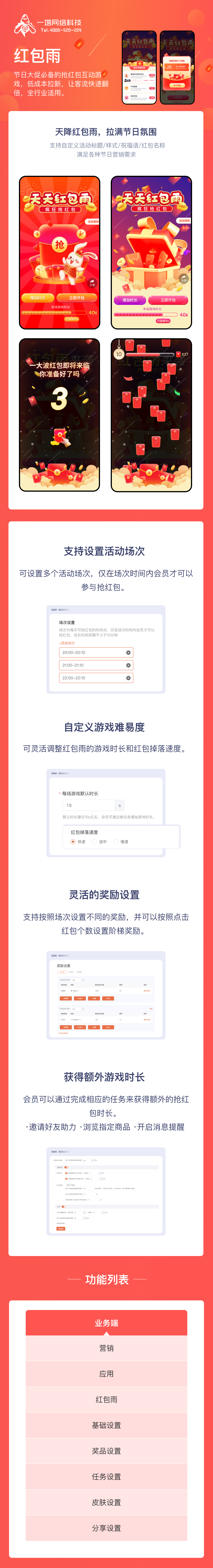 节日大促必备的抢红包互动游戏,低成本拉新,让客流快速翻倍,全行业适用。