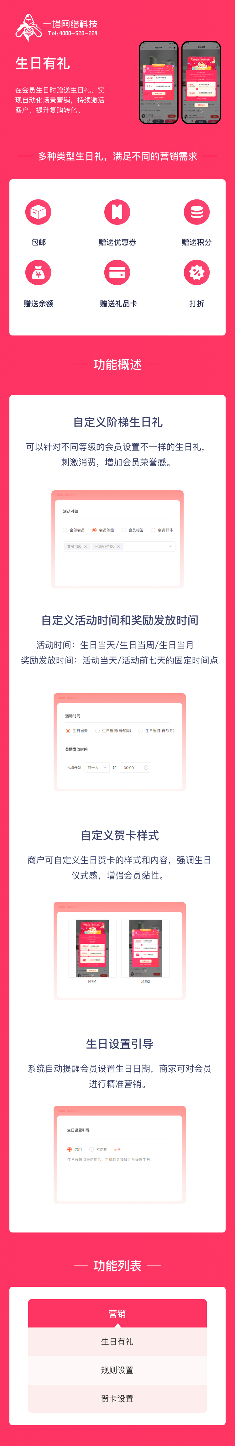 在会员生日时赠送生日礼,实现自动化场景营销,持续激活客户,提升复购转化。