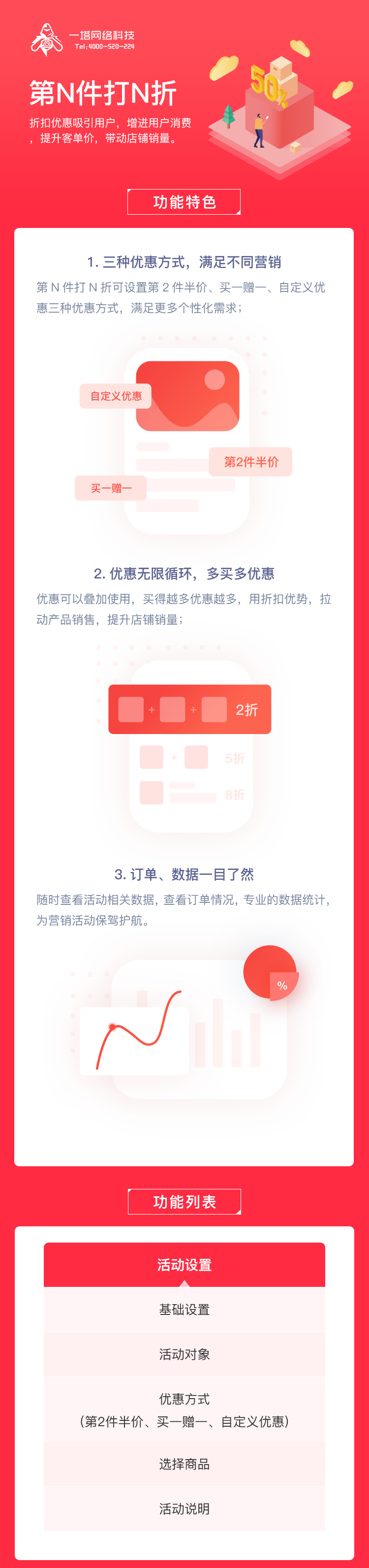 折扣优惠吸引用户,增进用户消费,提升客单价,带动店铺销量。