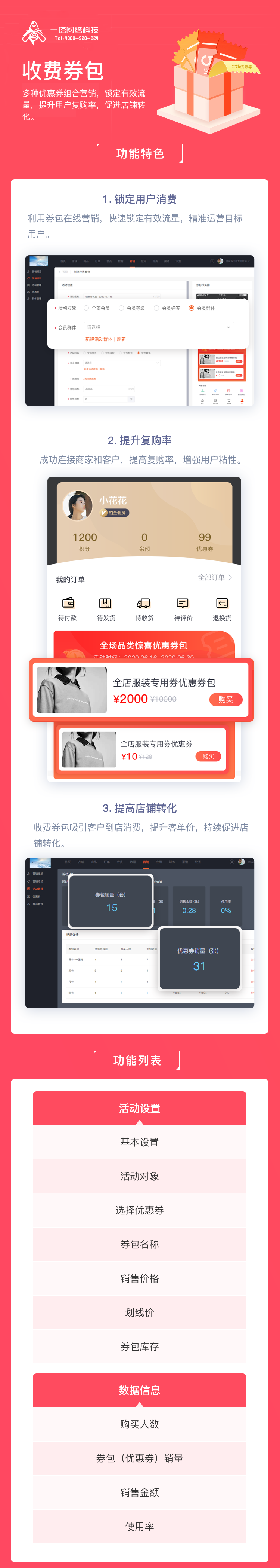 多种优惠券组合营销,锁定有效流量,提升用户复购率,促进店铺转化。