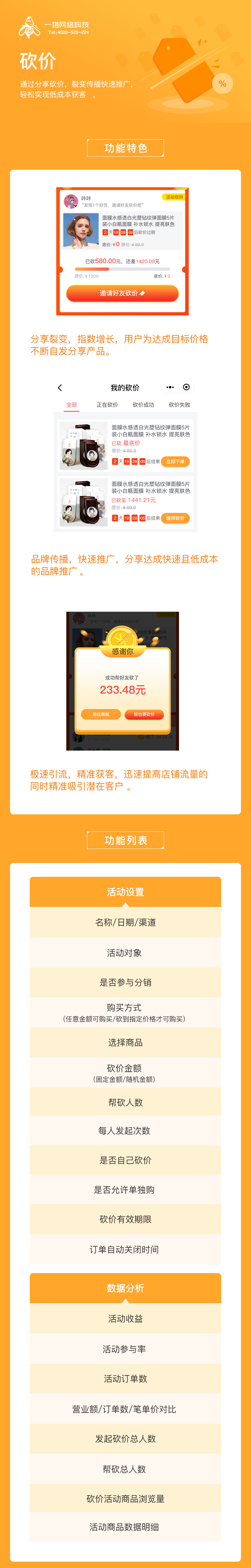 通过分享砍价,裂变传播快速推广,轻松实现低成本获客。