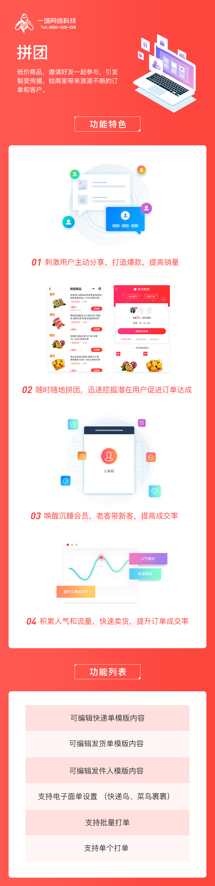 低价商品,邀请好友一起参与,引发裂变传播,给商家带来源源不断的订单和客户。